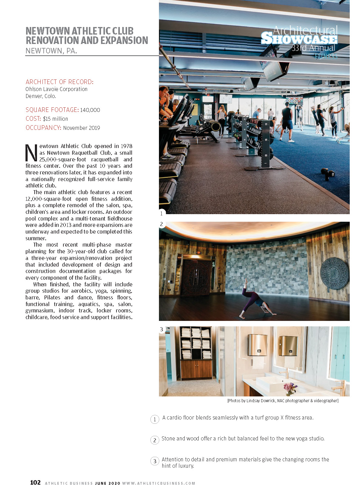 OLC was featured in the June issue of Athletic Business Magazine for the 33rd annual Architectural Showcase (pg. 102). The project featured is the Newtown Athletic Club in Newtown, PA. Feel free to check out this project in more detail on our OLC Work page.