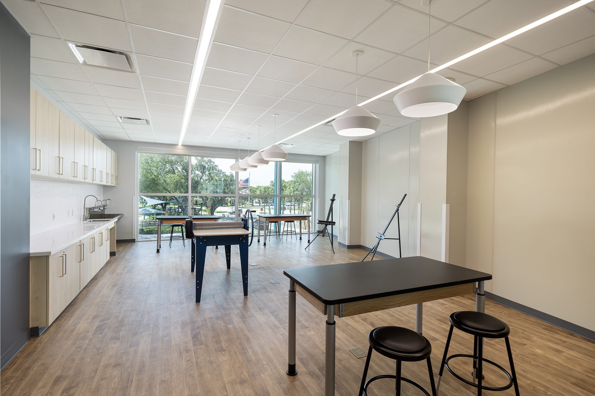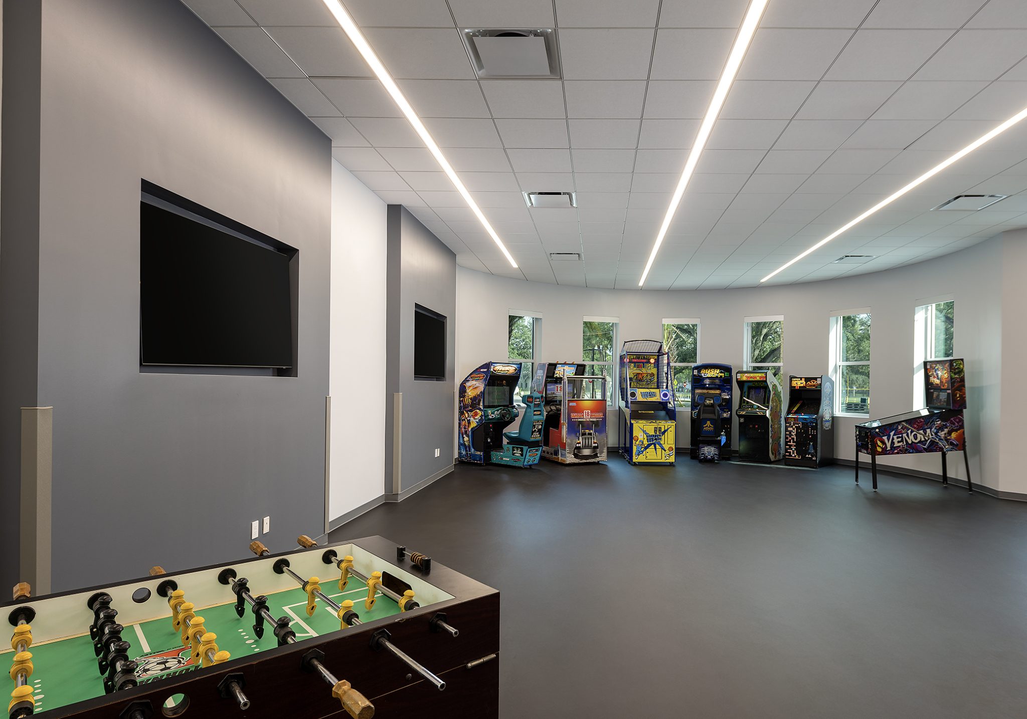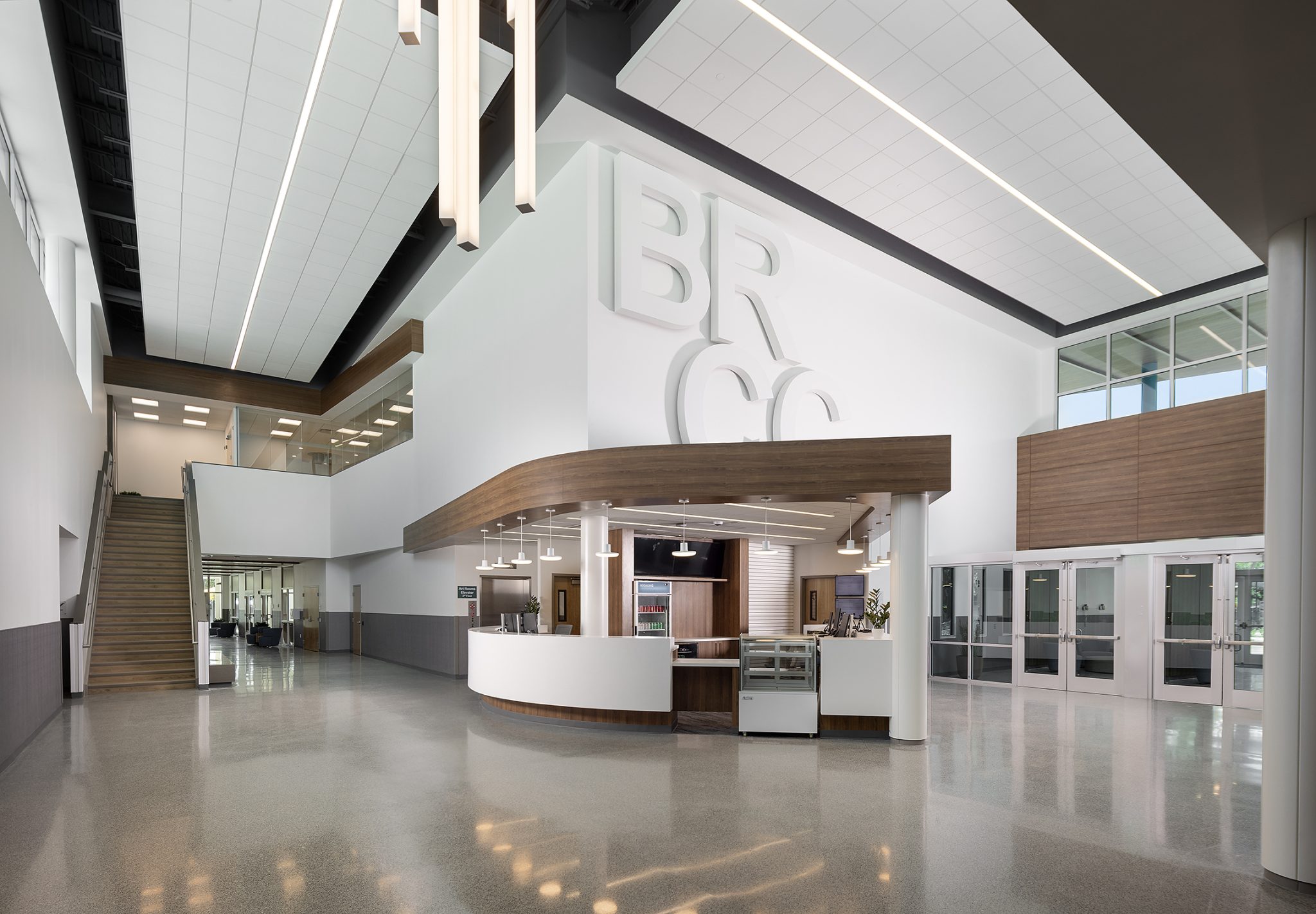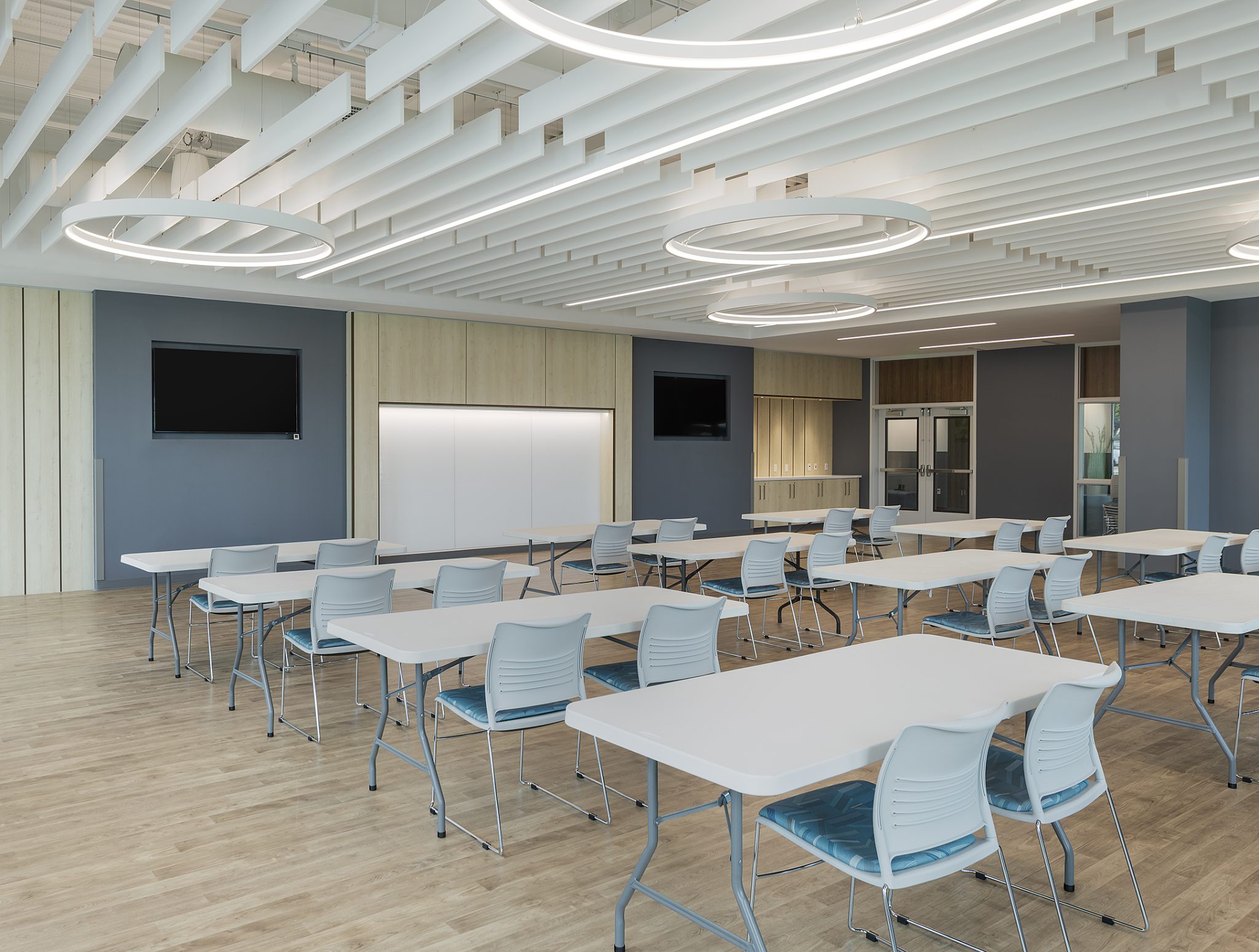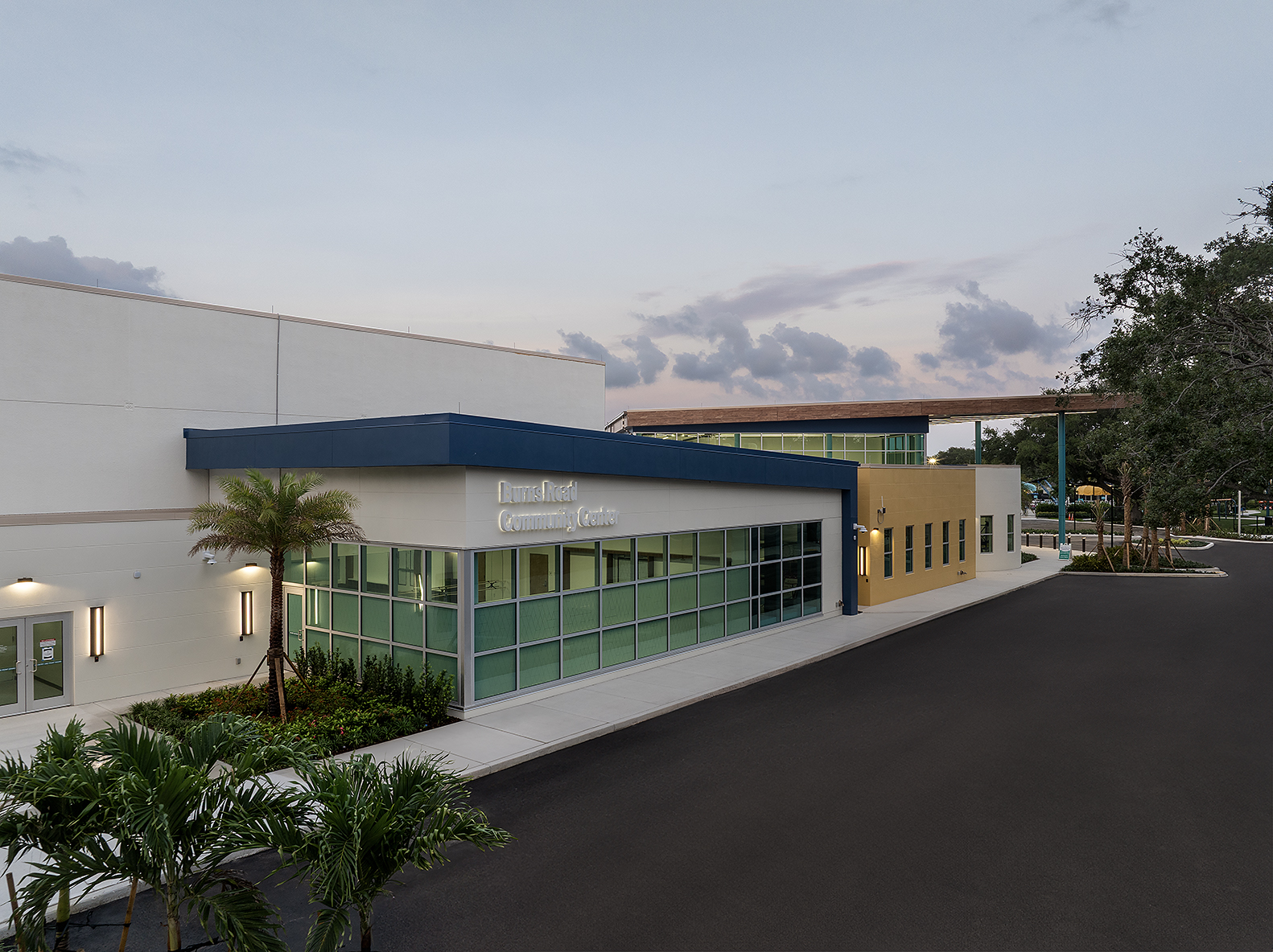 Since 1983, the Burns Road Community Center has been a vital hub for the Palm Beach Gardens community. After a citywide Service Analysis Survey in 2020, the City partnered with OLC to reimagine and modernize the facility to better reflect the evolving needs of its residents. OLC first completed Phase 1, designing a new pool house with lifeguard control, staff offices, locker rooms, and storage to support the aquatics program. Building on that success, OLC was awarded Phases 2 and 3 to expand and renovate the existing 43,300 sf facility. The plan included partially demolishing the original building to make room for a 29,420 sf, two-story expansion with a modern design, added amenities, and new office spaces. Phase 3 focused on the renovation of 28,000 sf of the remaining structure, including two multi-use gyms, locker rooms, and maintenance and parks and recreation admin offices.